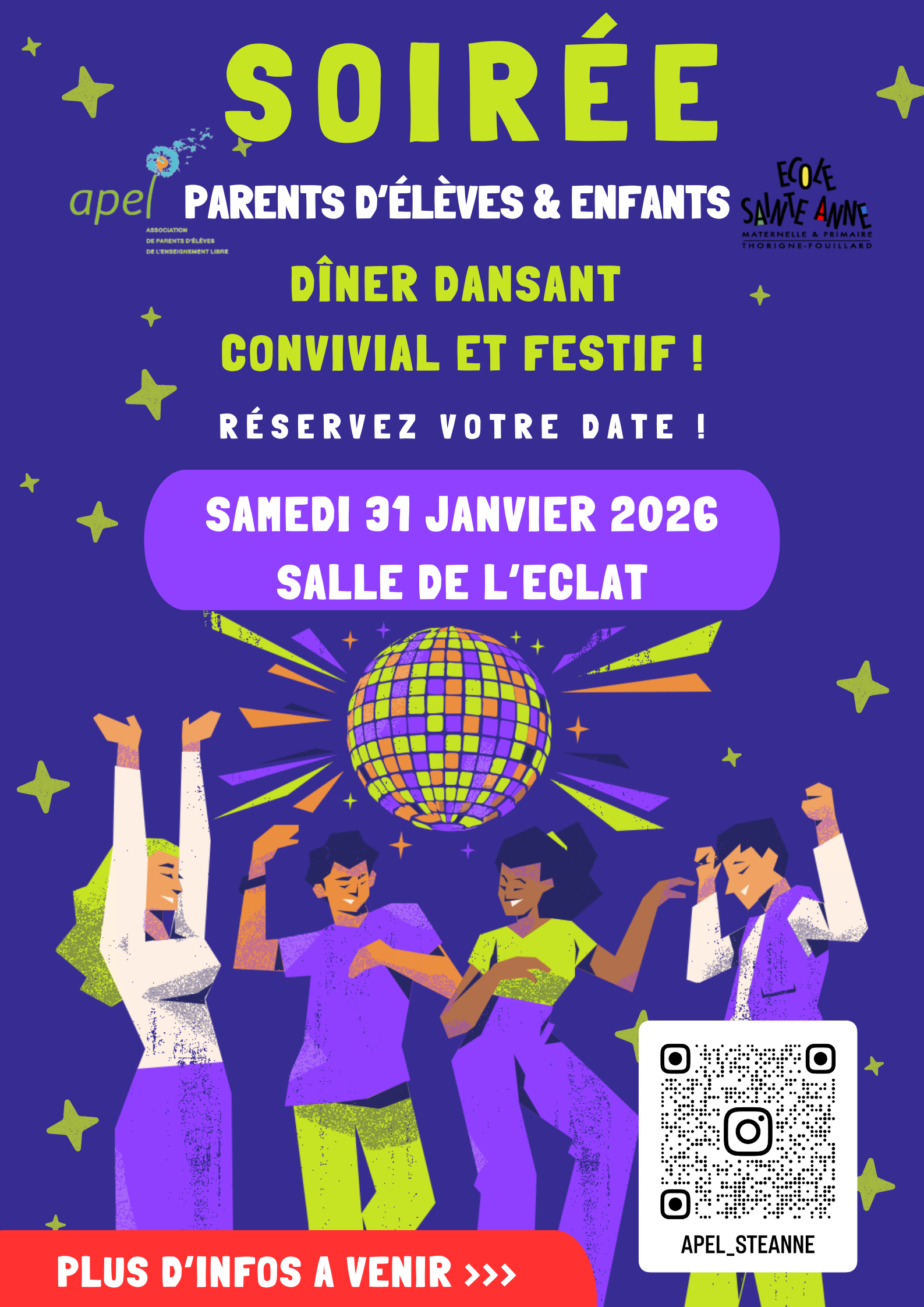 Réservez votre soirée ! Une grande soirée conviviale pour toute l’école ! Grands et petits… + d’infos à venir mais SAVE THE DATE !
